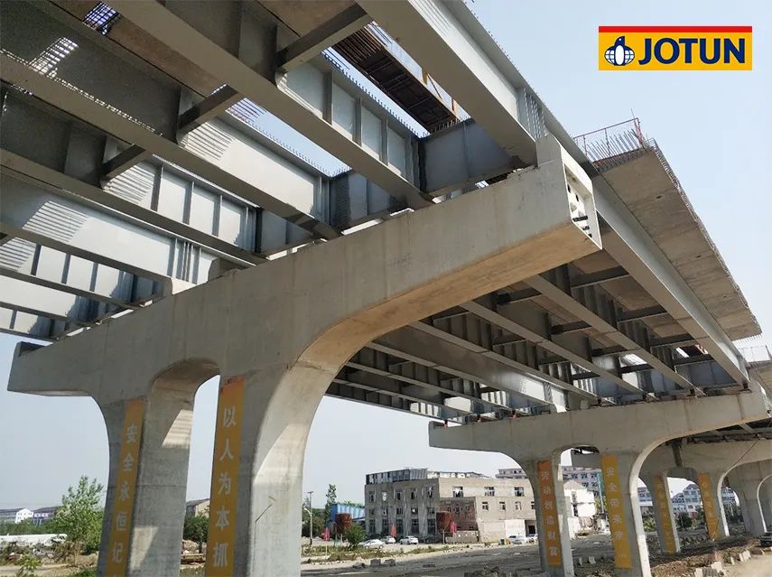 浙江臺(tái)州路澤太高架快速路項(xiàng)目橋梁為鋼板組合結(jié)構(gòu),全長17.5公里,全線鋼板梁共計(jì)4,200余片,是目前國內(nèi)最長的鋼結(jié)構(gòu)高架橋梁公路,是臺(tái)州人民期待已久的民生大通道項(xiàng)目。佐敦高固含品質(zhì)氟碳產(chǎn)品為此項(xiàng)目提供保護(hù),共約50萬平米涂裝面積。